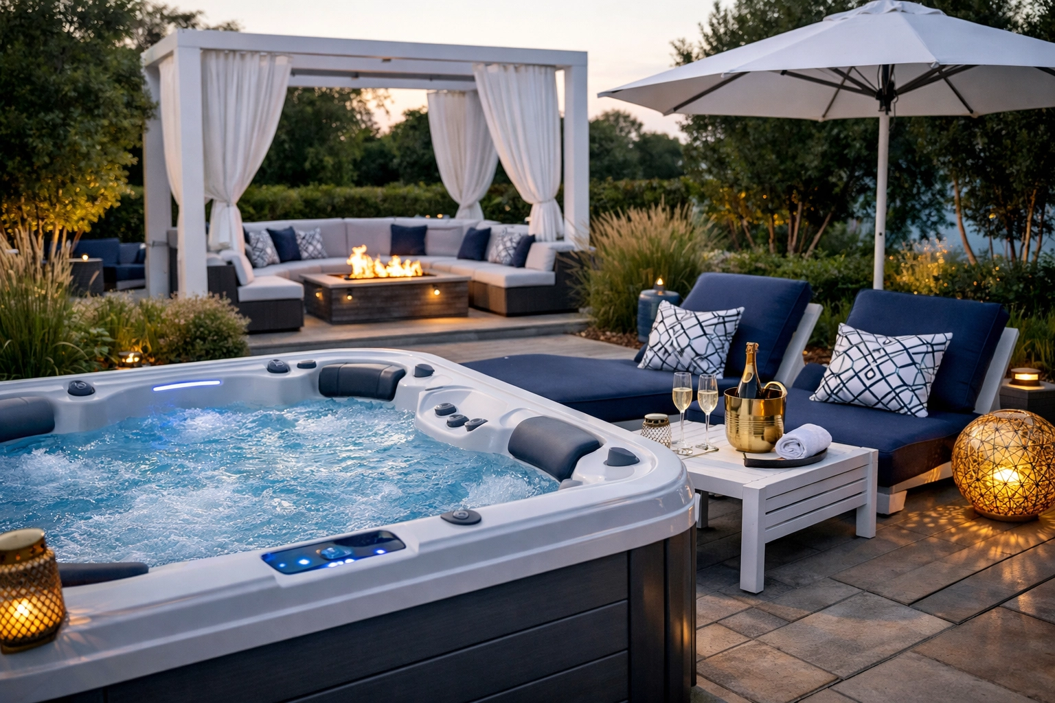 Tactile planting. Soften the edges of your hardscaping with feathery grasses and ornamental shrubs. Position container gardens at eye level so you can enjoy seasonal blooms while you’re in the water. By mirroring the shape of your tub: whether it’s square or round: with your patio layout, you create a cohesive, minimalist aesthetic that feels professionally designed.